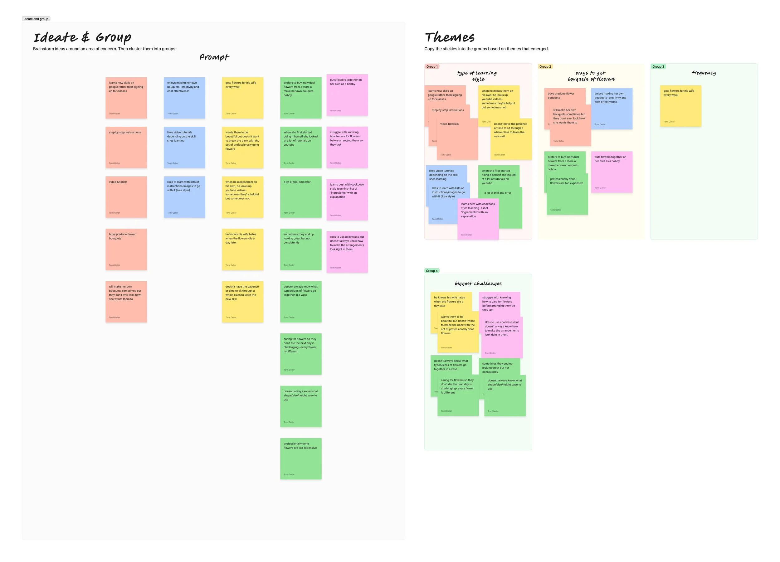 My key findings were that people prefer to buys flowers of their choice and put them together on their own for a variety of reasons- to save money as well as for a hobby. However, people struggle to make their bouquets look professional the way they do when you buy a pre-assembled bouquet from a florist.